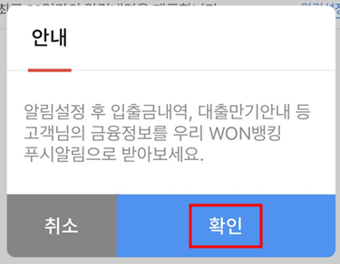 1. 우리WON뱅킹 알람서비스 신청하기