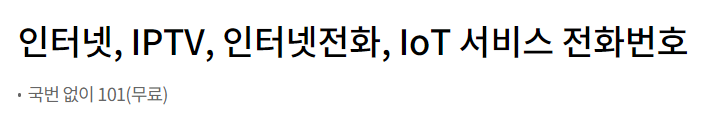 인터넷, IPTV, 인터넷전화, IoT 서비스 전화번호는 국번없이 101 이고 무료로 제공되는 서비스입니다. 해당 서비스도 눈으로 보는 ARS 또는 음성 ARS 로 통화가 가능합니다.