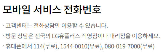 LG U+ 는 서비스에 따라서 고객센터 전화번호가 다릅니다. 먼저 모바일 서비스 고객센터 전화번호 부터 알려드리겠습니다.