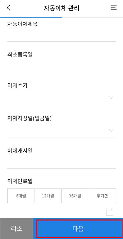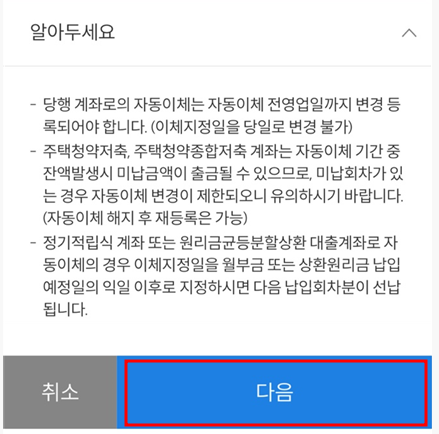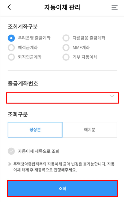 3) 자동이체 관리에서 출금계좌번호를 선택하신 후에 조회