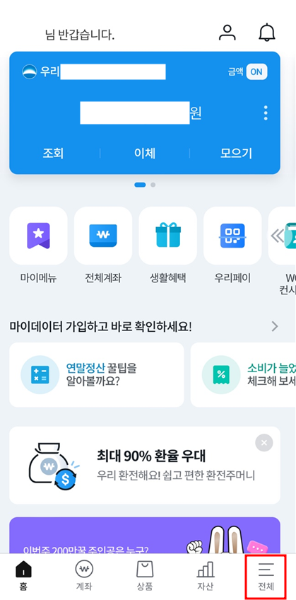 1) 먼저 우리WON뱅킹 어플에 들어가줍니다.