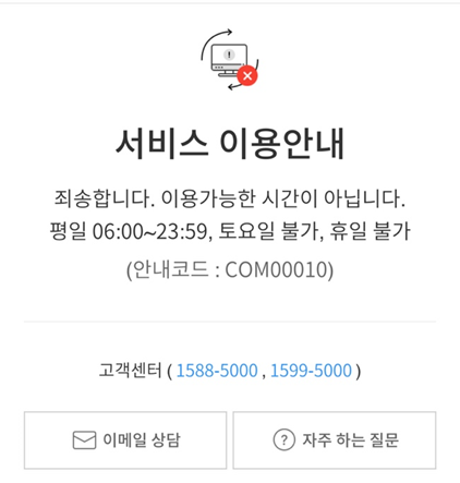 처음에 우리은행 자동이체 변경을 주말에 진행하려고 했는데 변경이 불가하더라구요. 해당 서비스를 이용할 수 있는 시간은 평일 06:00~23:59 입니다. 토요일 및 휴일은 해당 서비스 이용이 불가합니다.