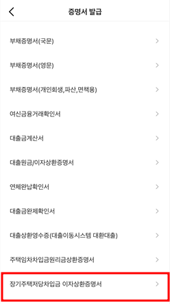 대출로 들어가시면 바로 "장기주택저당차입금 이자상환증명서" 가 있습니다.
