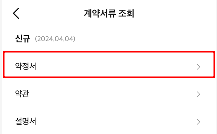 4. 계약서류 버튼을 클릭해주신 후에, 약정서로 들어가줍니다. 약정서 중에 본인이 다운로드 하고자 하는 건을 클릭해주시면 됩니다. 저같은 경우는 대출 거래 약정서를 다운로드 받아서 제출했습니다.