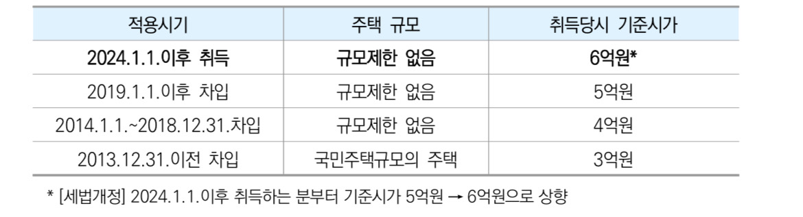 *6억원 이하는 2024.1.1 이후 취득한 주택에 한에서 입니다. 이전 취득의 경우 기준시가가 다르니 위의 표를 참고 해주시면 됩니다.