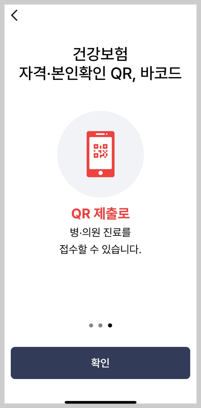 3. 모바일 건강보험증 하단에 [QR, 바코드 제출]로 들어가서 QR 혹은 바코드를 제시해주세요.
